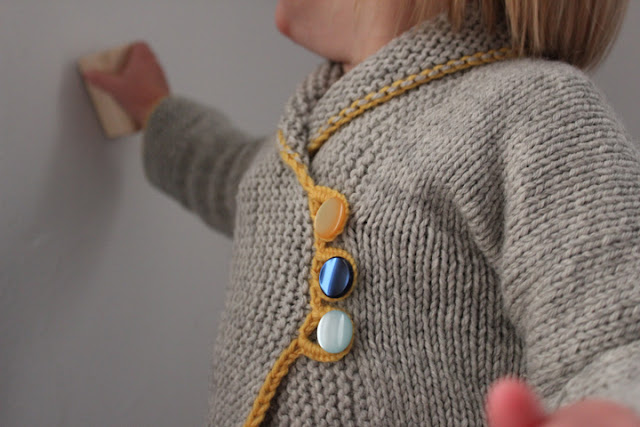At little sneak peek at what's new for November. I've been working on this thing for entirely too long, but finally found just the right vintage buttons. If I had made it bigger (or maybe faster) I would be keeping this one for L. This fits up to 12 months, but is modeled by a much bigger baby. The Shawl Collar Baby Coat sizing is incredibly versitile. Just one of the new additions I hope to have in the shop when it reopens at the end of the week.